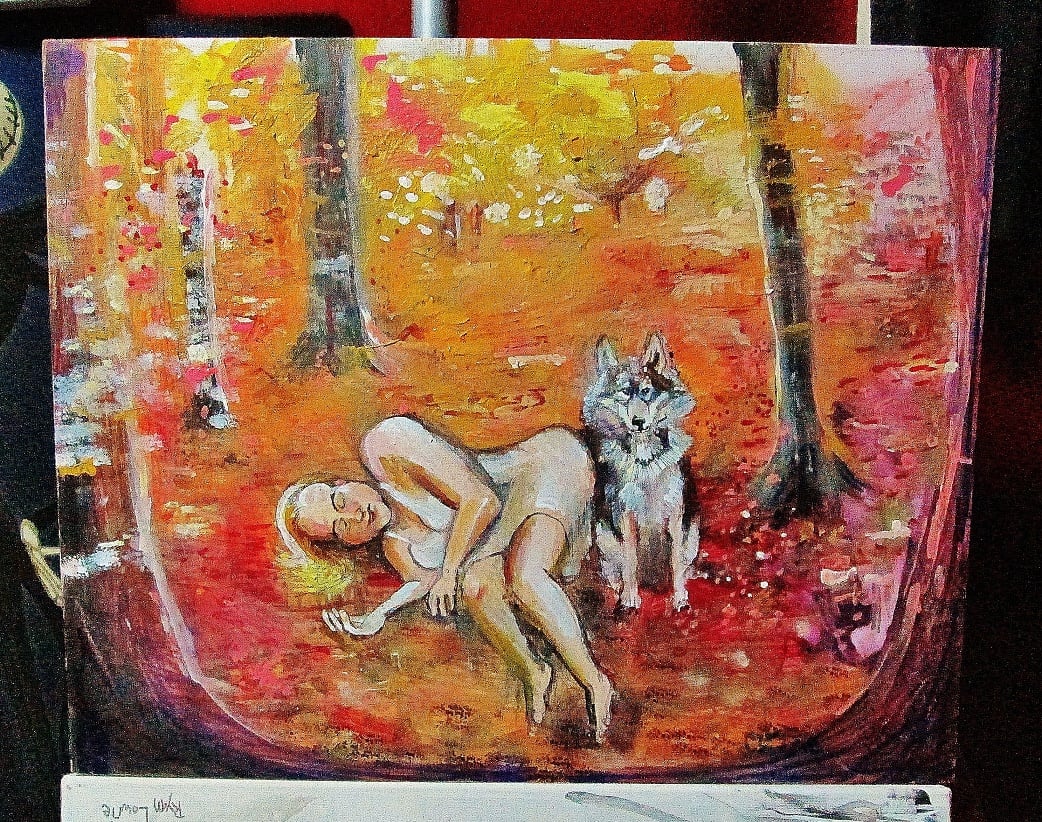 Over the river and through the woods, a painting by Ryan Lowrie onto a canvas wrapped board. mixed media. 16" x 20"