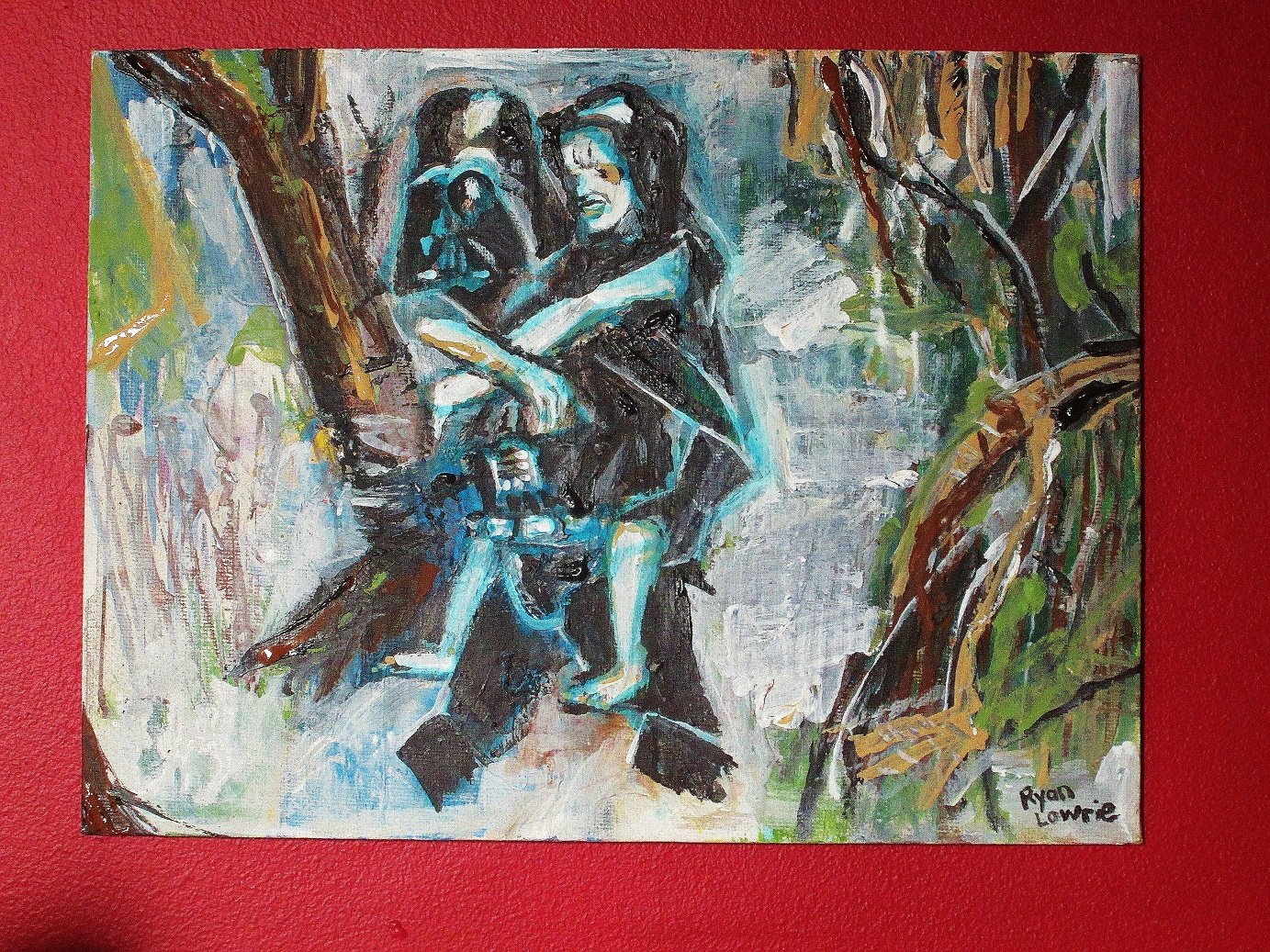 mixed media onto a canvas wrapped board. 9" x 12" palpatine piggyback
