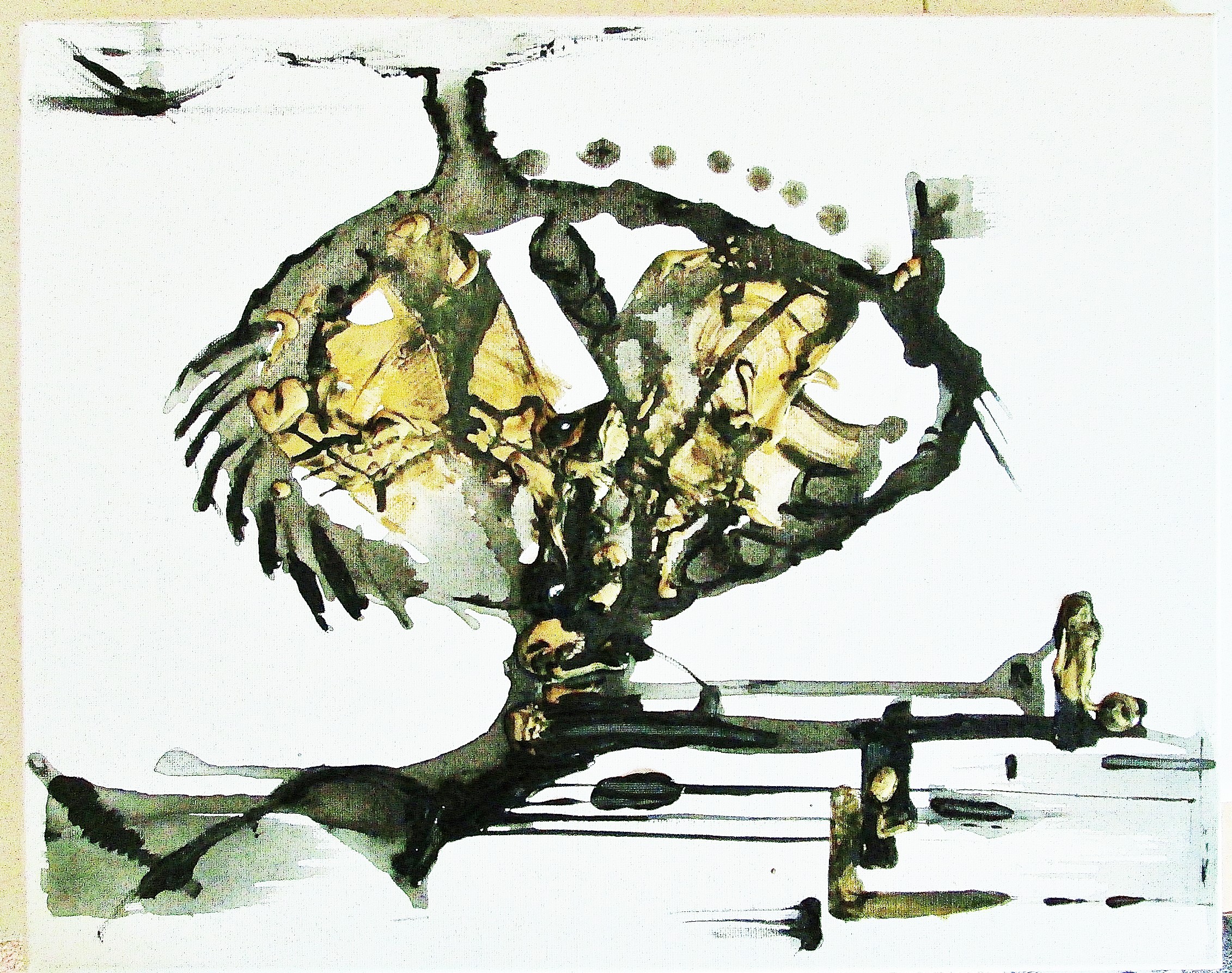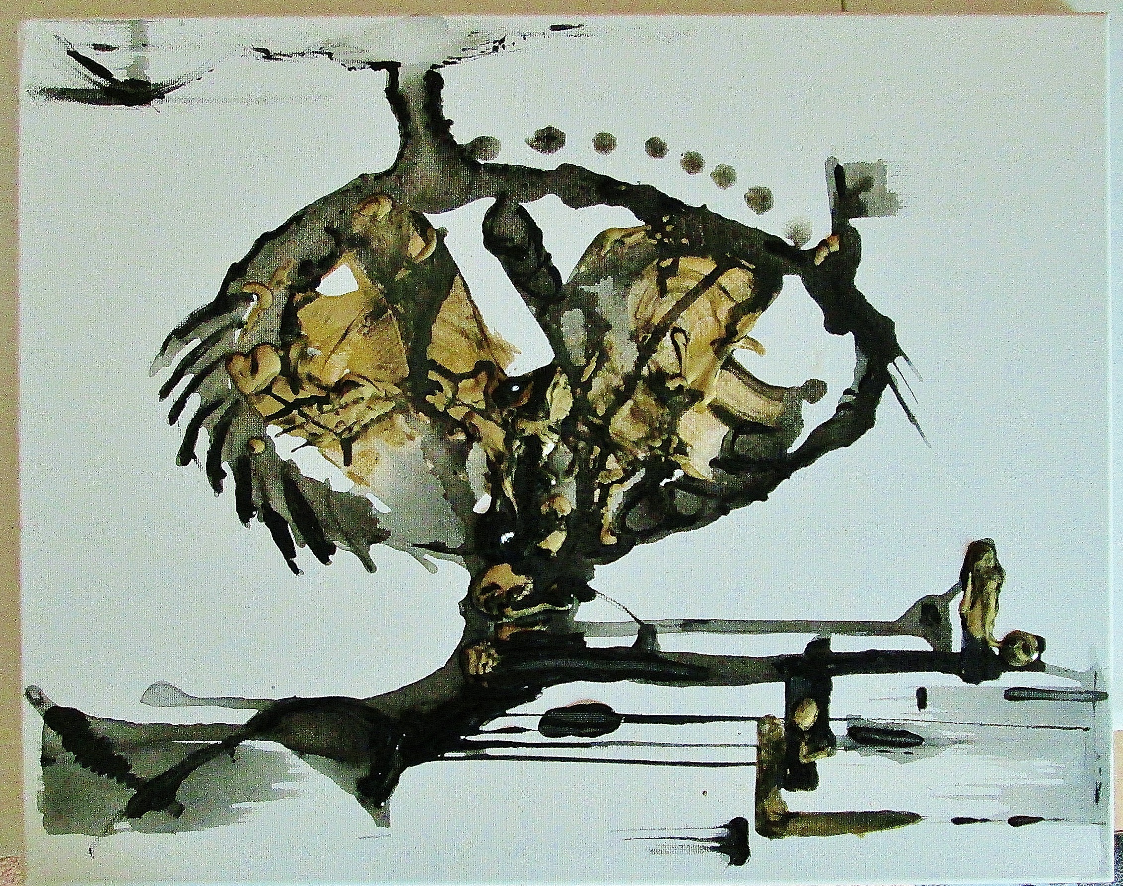 Eat Your Ego. mixed media onto a 16" x 20" canvas wrapped wooden frame.