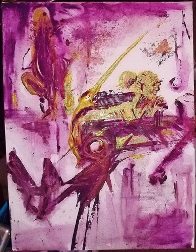 Gush Rhythmic. mixed media onto a 12" x 9" canvas wrapped board.