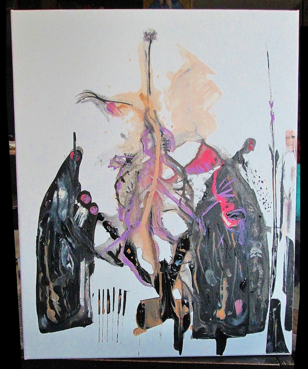 Fire in her lungs. 16" x 20" mixed media. canvas wrapped wooden frame.