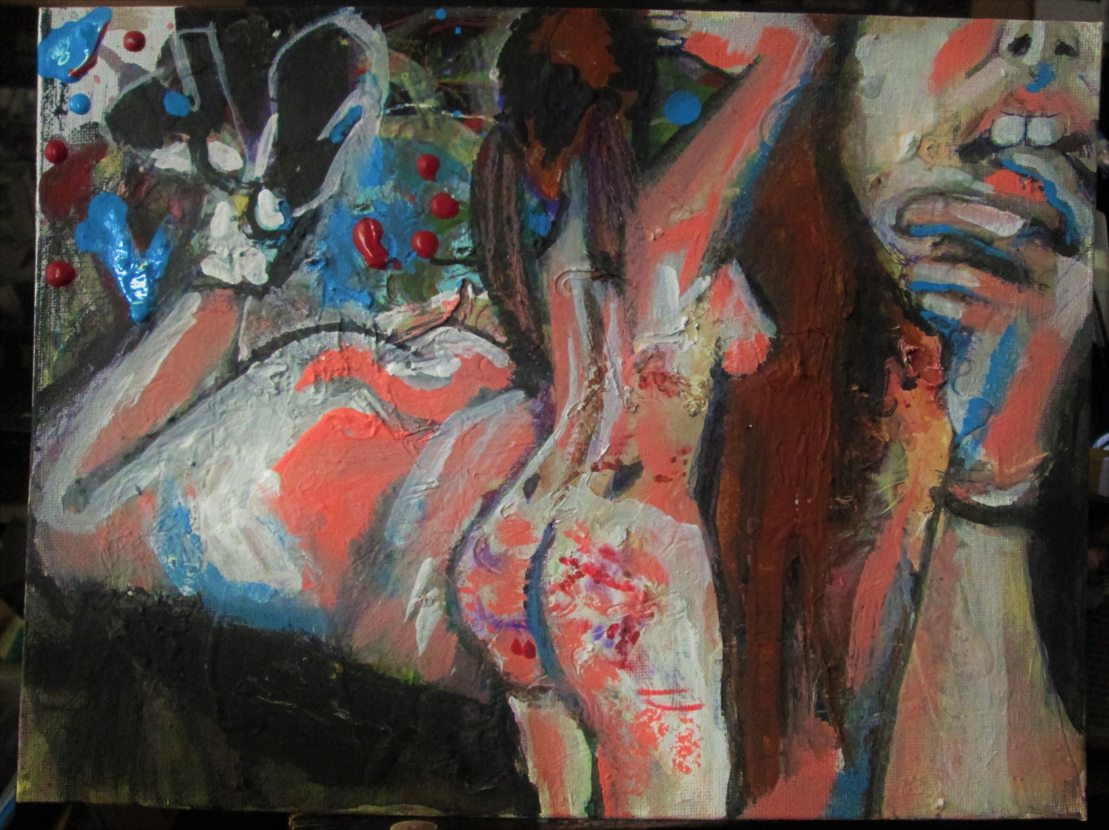 Contusion cinco. 5th installment in my bruise odyssey series. 9" x 12" canvas wrapped board. Very mixed media.
