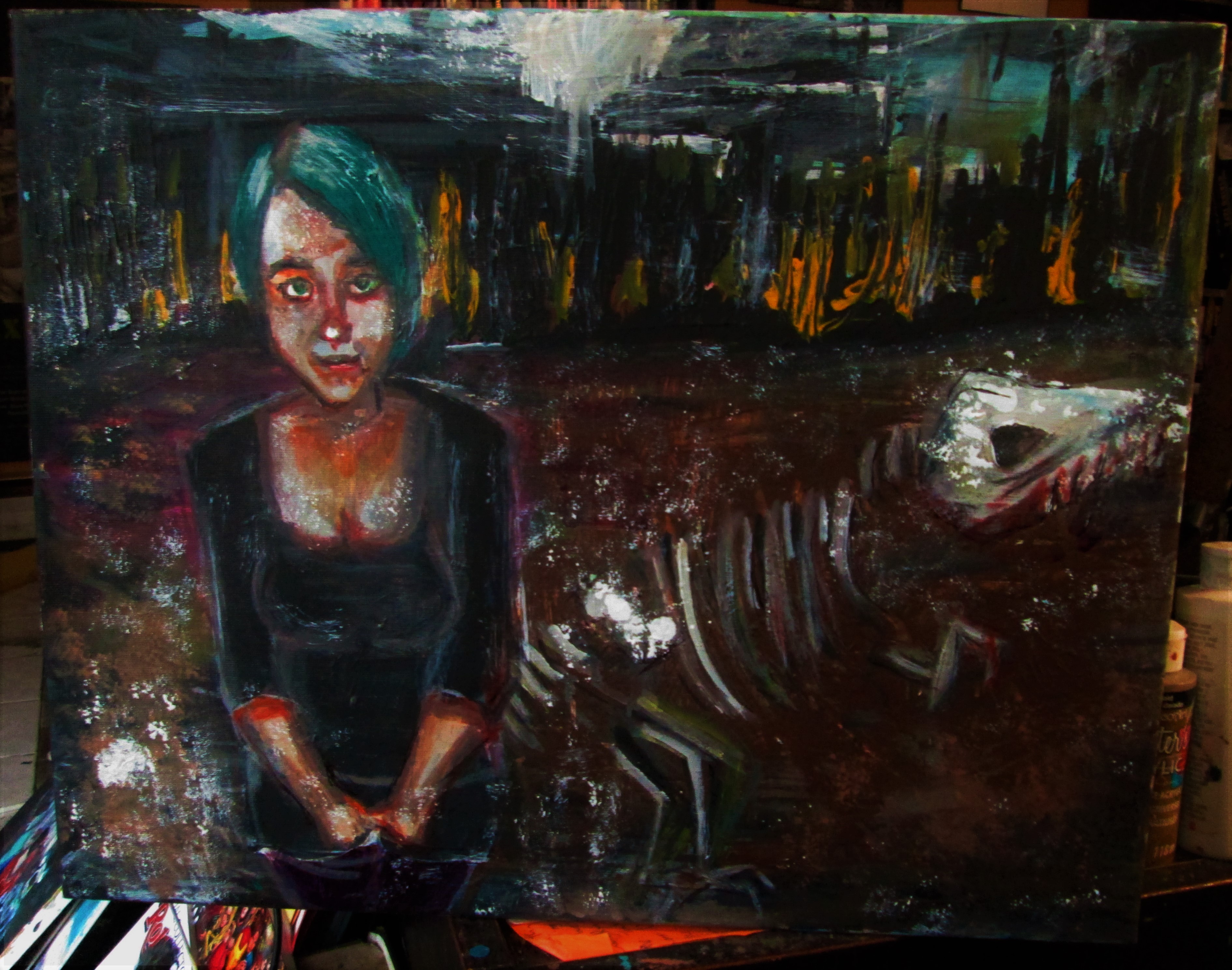 Excavating Kowalski. 16" x 20" mixed media on canvas wrapped wooden frame.