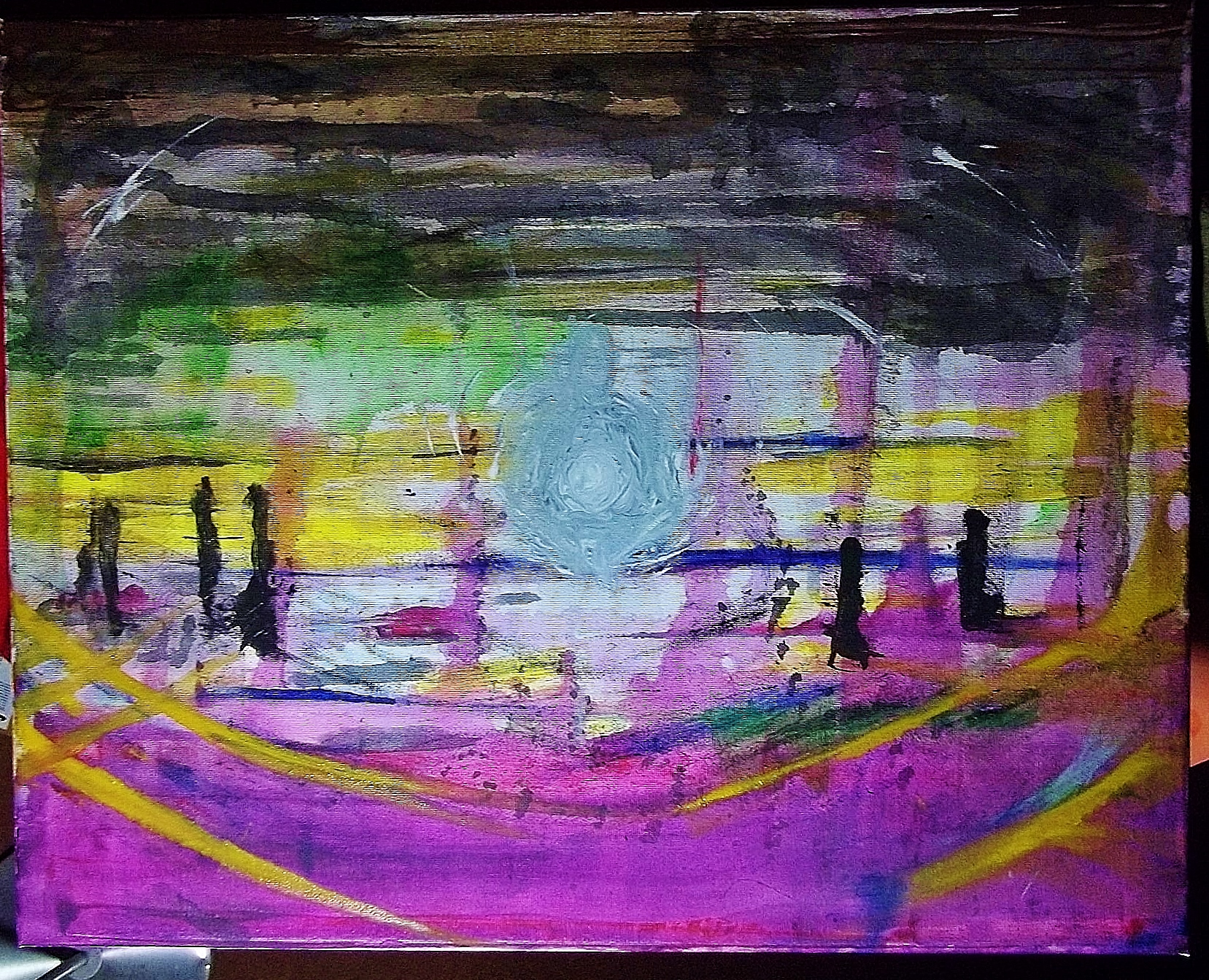 Self Induced Hypnosi$ 16" x 20" mixed media onto a canvas wrapped board.