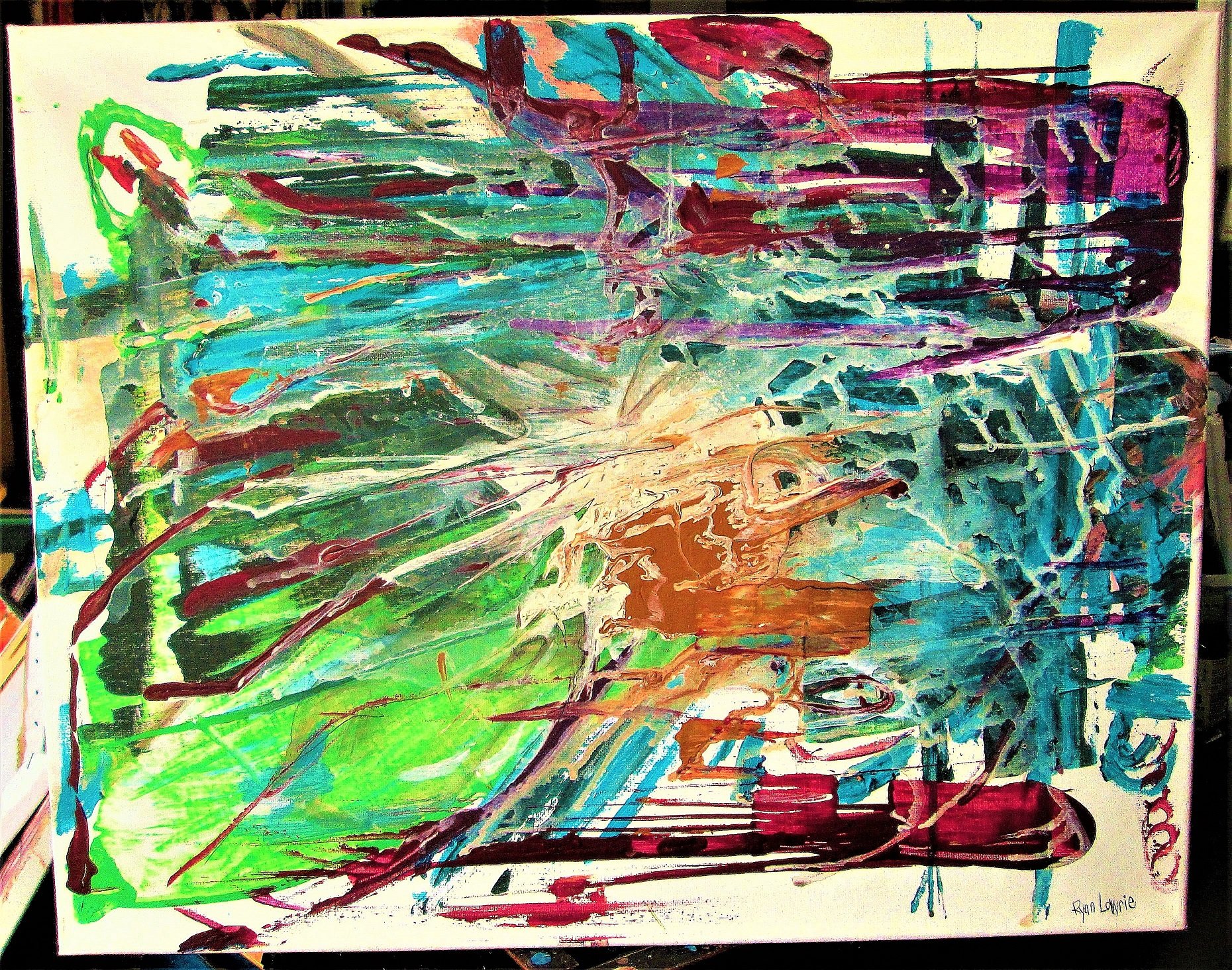 Mixed media onto a 16" x 20" canvas wrapped wooden frame.