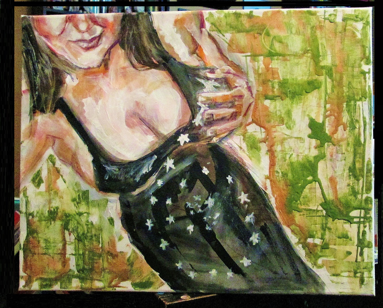 Small Town Goddess. 16" x 20" mixed media on canvas wrapped wooden frame.