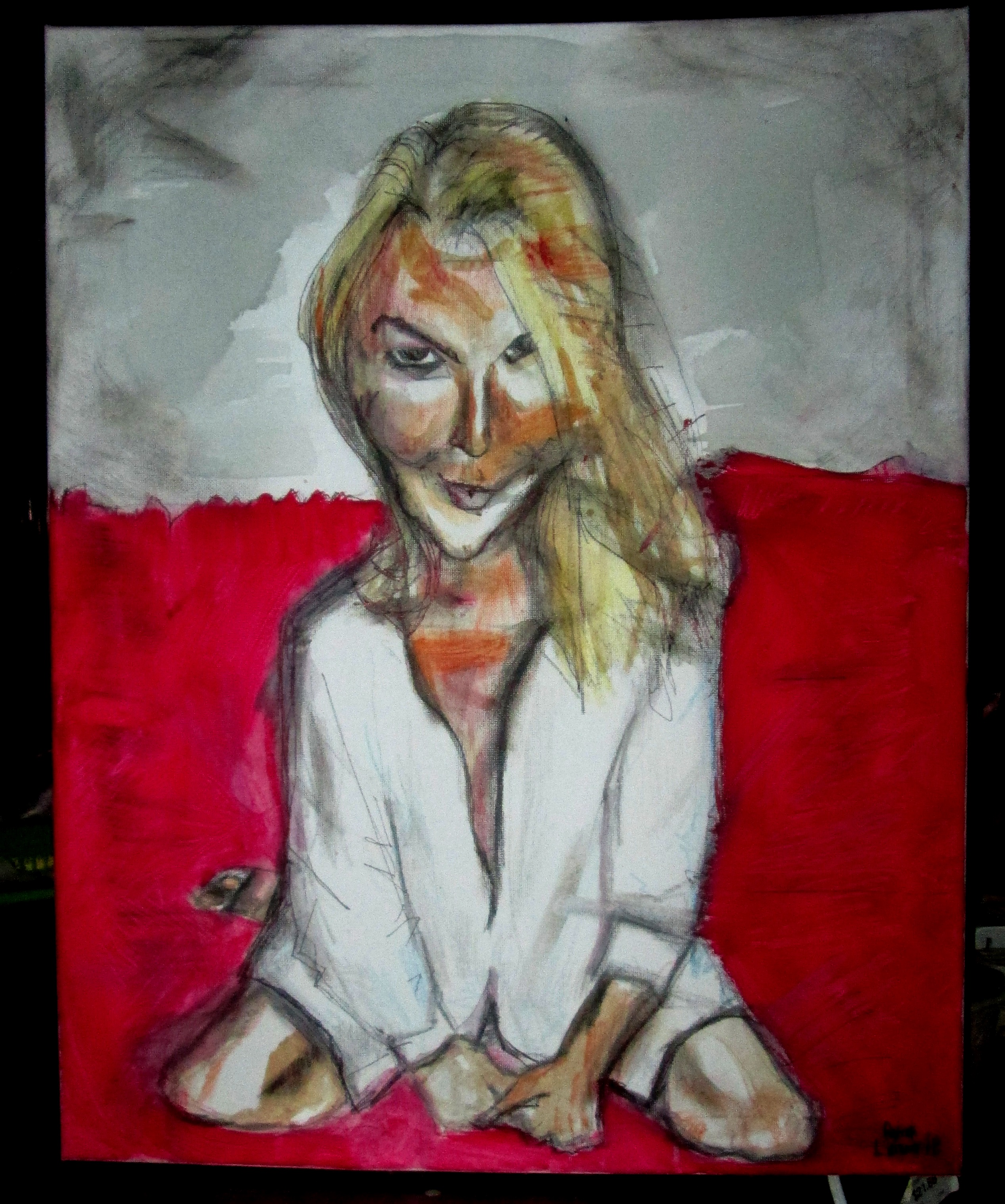 Wine Sky and Lips. 16"x20" mixed media onto a canvas wrapped wooden frame.